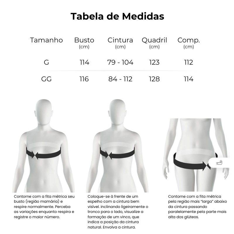 Consulte o guia de medidas disponível na página para escolher o tamanho ideal.