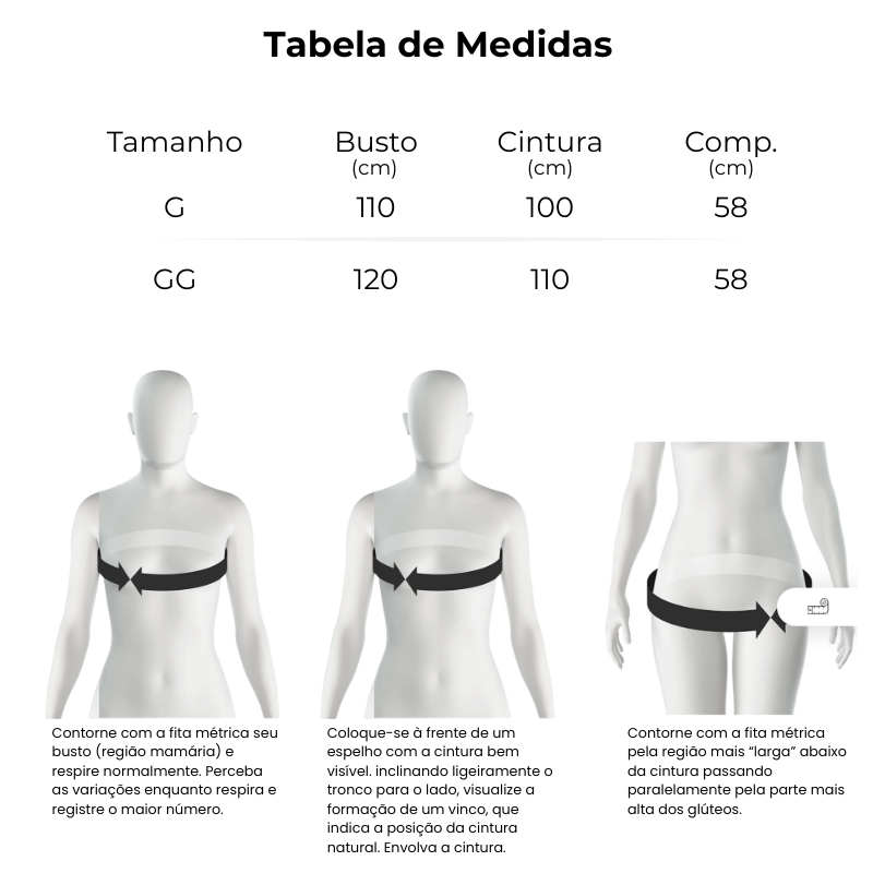 Consulte o guia de medidas disponível na página para escolher o tamanho ideal.