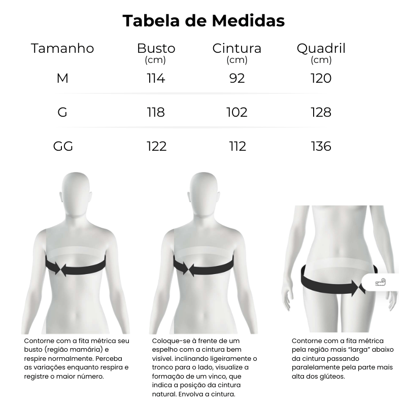 Cintura com lastex nas costas que proporciona melhor ajuste ao corpo